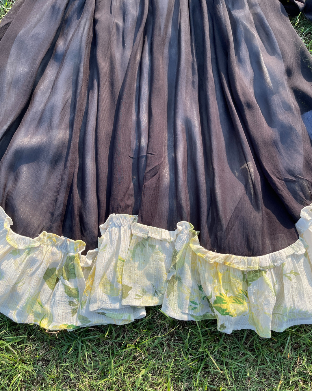 Layered skirt with floral ruffle hem