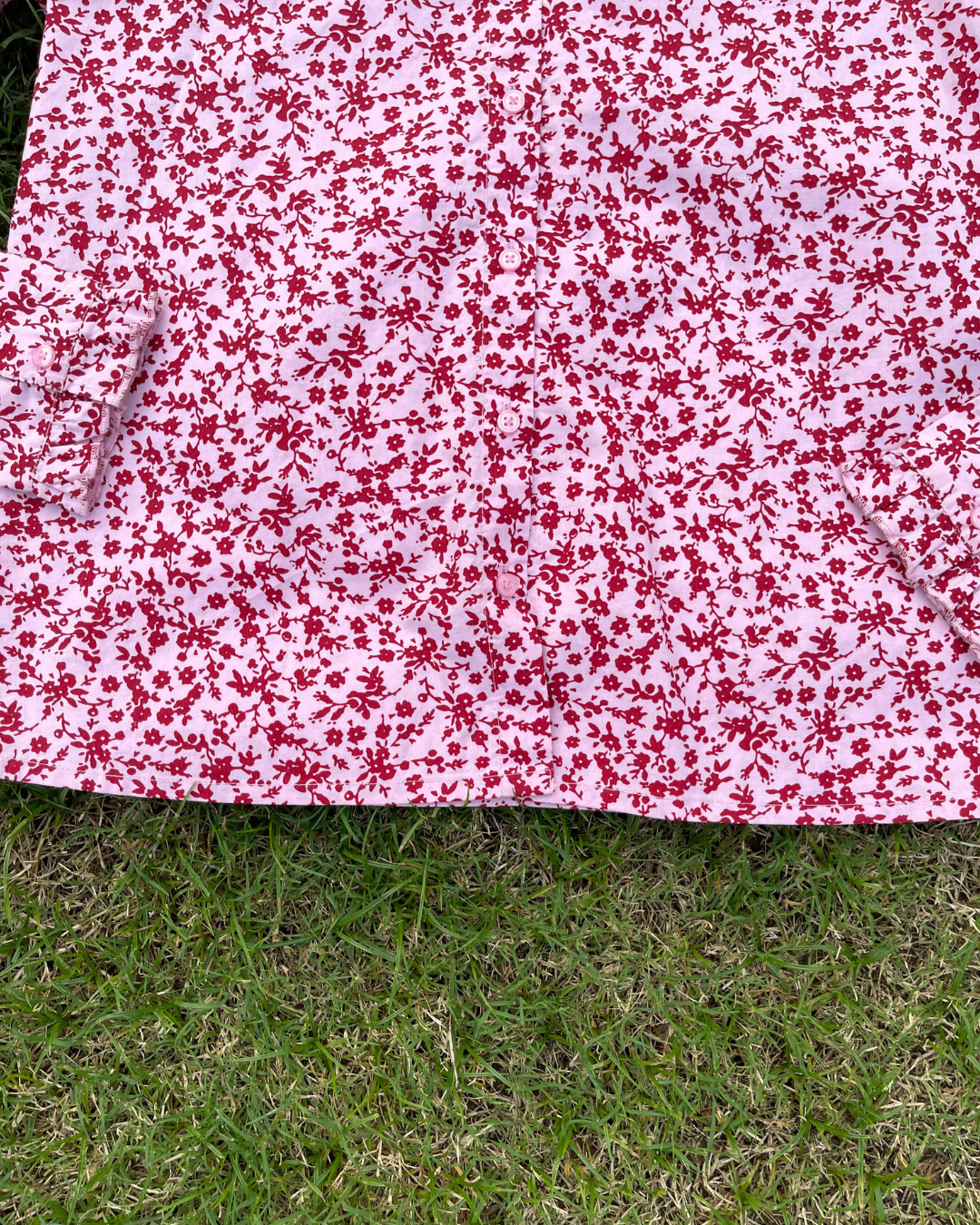 🌸 Color: Light Pink with all-over Red floral print
